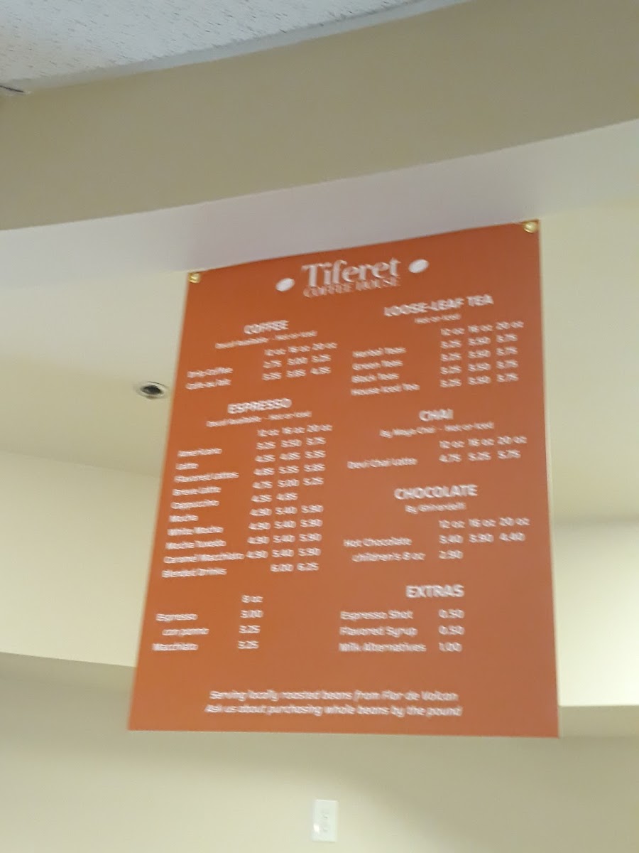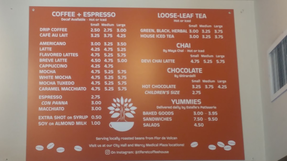 Tiferet by the Park offers a straightforward café menu that balances comforting drinks with casual bites, perfect for those moments when you want to slow down or catch up with a friend. The selection features familiar favorites like an Americano or a refreshing ice latte, alongside thoughtfully crafted options such as the House Iced Tea or the unique Order Iced Tuxedo, inviting guests to explore flavors beyond the usual coffee shop fare.